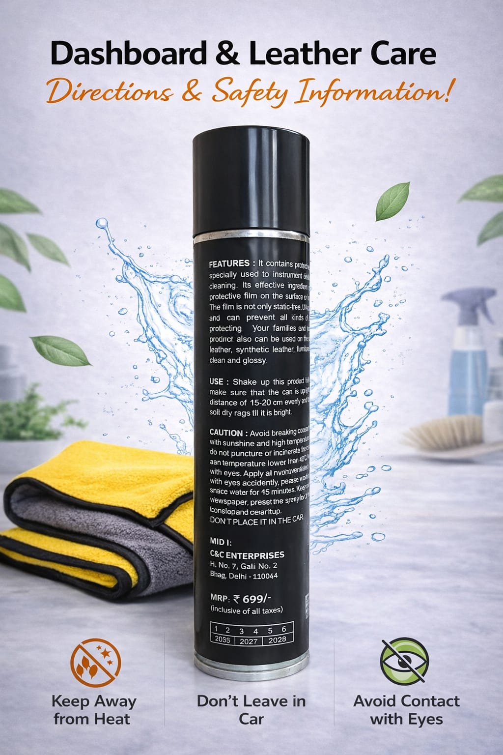 The conditioner penetrates deep into leather and plastic surfaces, helping to prevent cracking, fading, and dryness caused by heat, dust, and UV exposure. It leaves behind a smooth, matte-to-satin finish with a fresh, long-lasting fragrance, making your car interior feel brand new every time.
